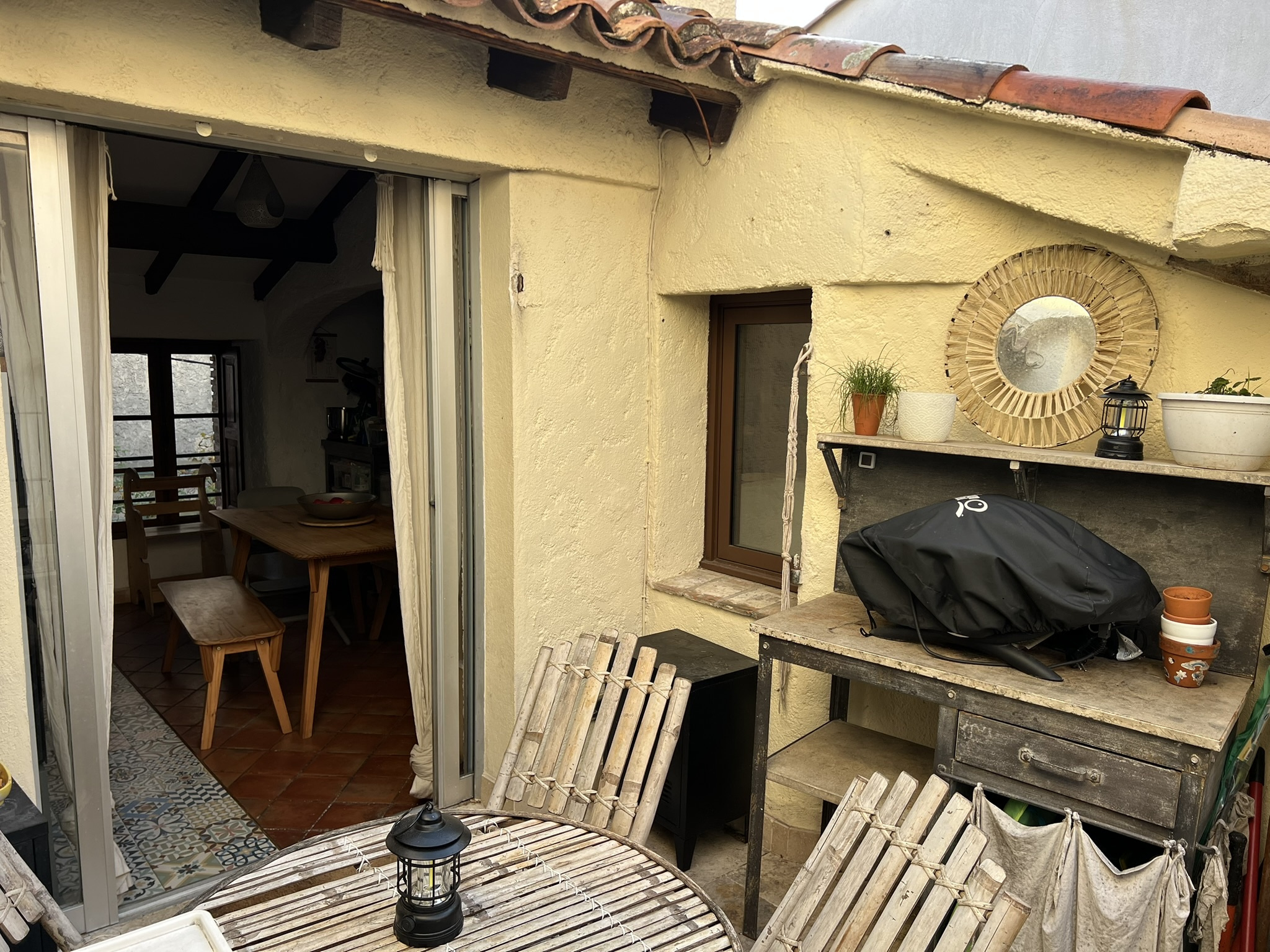 Golfe de Saint tropez, à 10 mn des Plages de Sainte Maxime, au coeur d'un Quartier historique du Village de Le Plan de la Tour, à proximité du centre, des Commerces, de l'école et de la Campagne. Charmante Maison de Village typiquement Provençale avec une jolie Terrasse en espace extérieur. Joli Séjour avec plafond rampant et poutres apparentes, Cuisine Américaine donnant accès à la Terrasse. Première Chambre avec accès à une Salle de Bains, Seconde Chambre avec sa Salle deToilettes comprenant une Vasque et une Douche. Charme Provençal authentique au coeur d'un Quartier calme proche de la nature et des commodités du Centre Village.