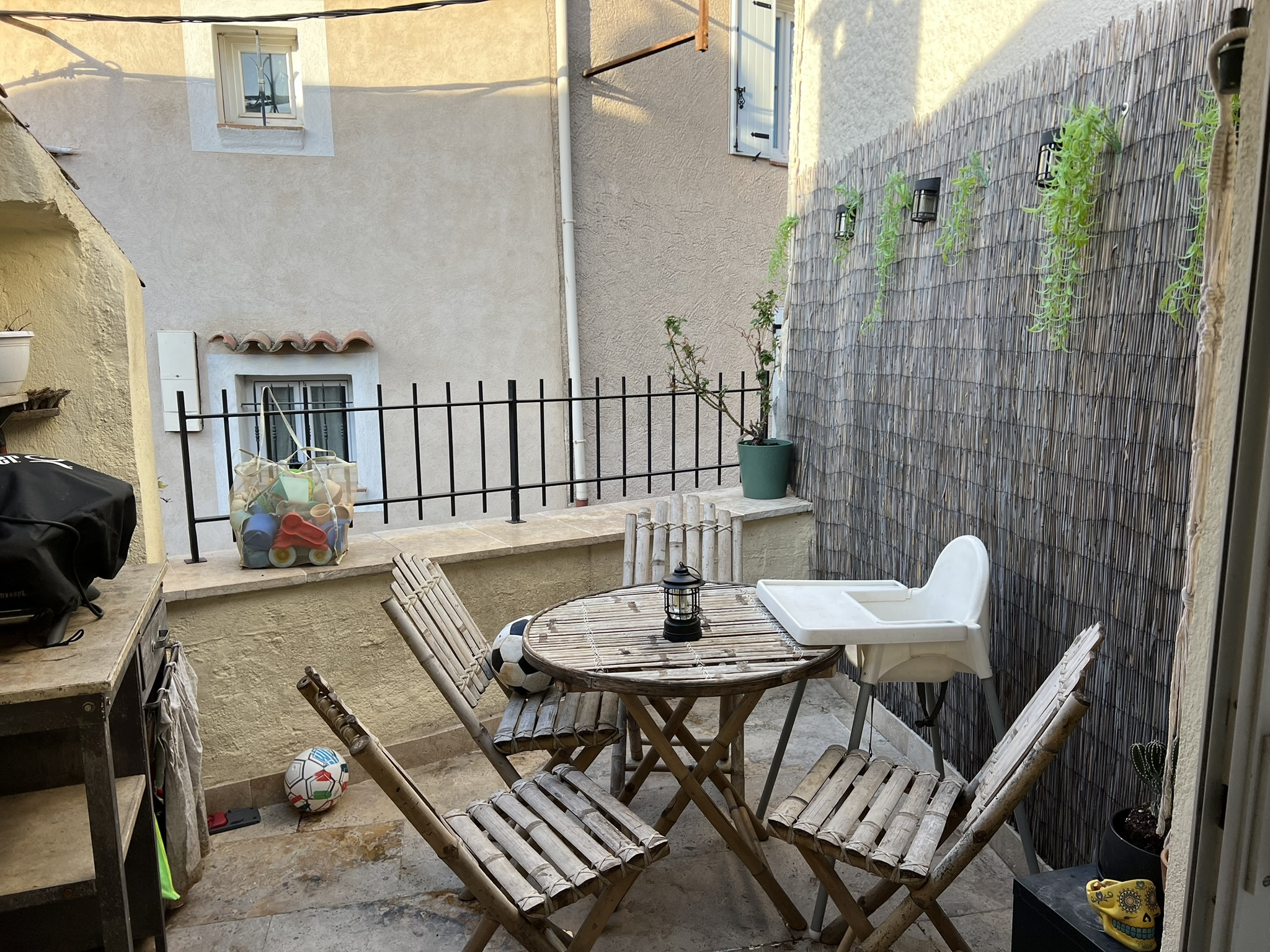Golfe de Saint tropez, à 10 mn des Plages de Sainte Maxime, au coeur d'un Quartier historique du Village de Le Plan de la Tour, à proximité du centre, des Commerces, de l'école et de la Campagne. Charmante Maison de Village typiquement Provençale avec une jolie Terrasse en espace extérieur. Joli Séjour avec plafond rampant et poutres apparentes, Cuisine Américaine donnant accès à la Terrasse. Première Chambre avec accès à une Salle de Bains, Seconde Chambre avec sa Salle deToilettes comprenant une Vasque et une Douche. Charme Provençal authentique au coeur d'un Quartier calme proche de la nature et des commodités du Centre Village.